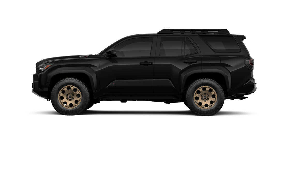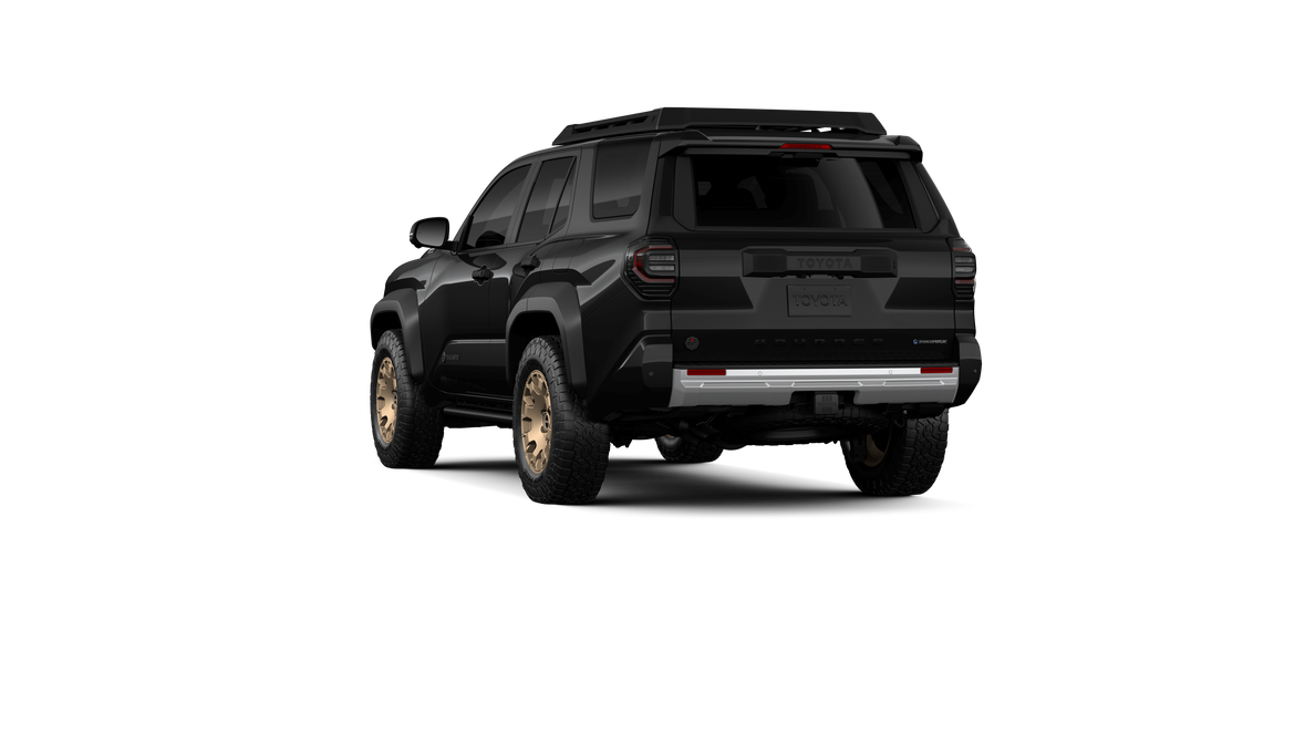 - Black "TOYOTA" heritage grille, door handles and overfenders; color-keyed mirror caps and rear spoiler; black "TRAILHUNTER" and "4RUNNER" badges