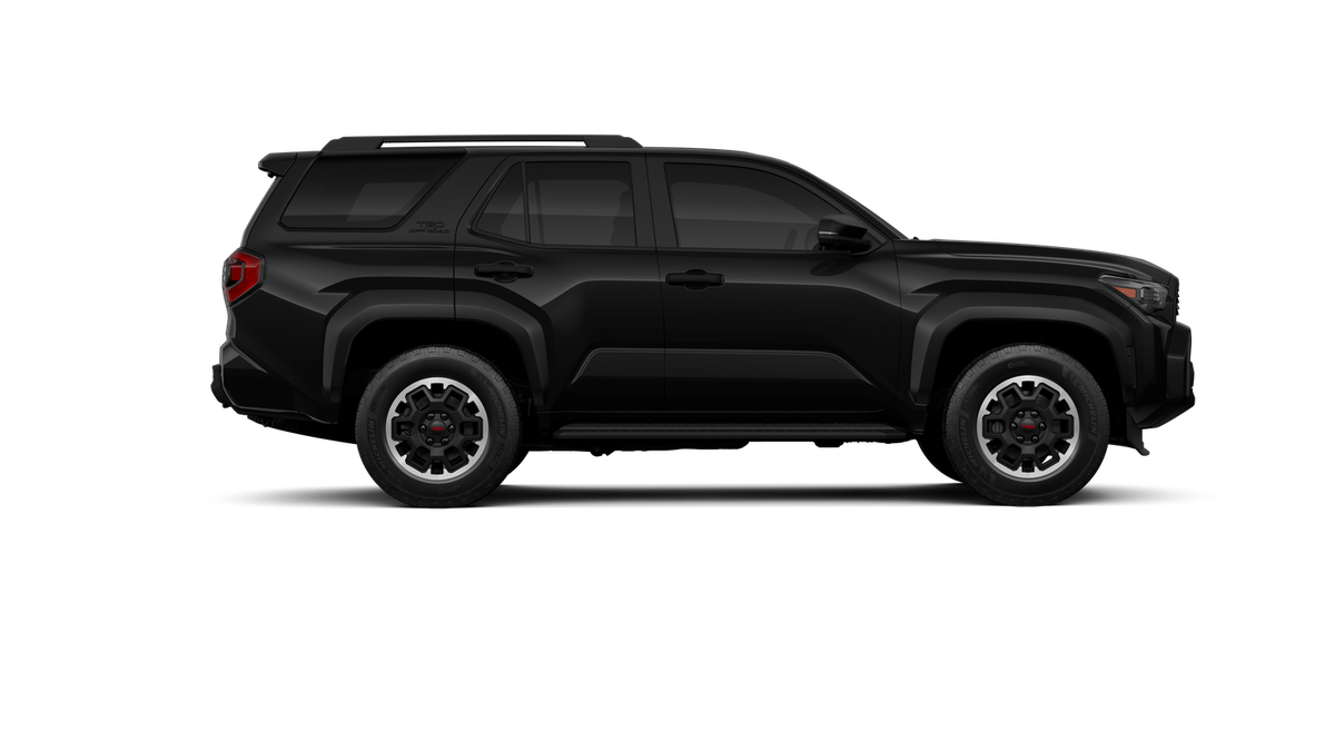 - Black honeycomb-style grille, mirror caps, door handles and overfenders; color-keyed rear spoiler; black "TRD OFF ROAD" and "4RUNNER" badges