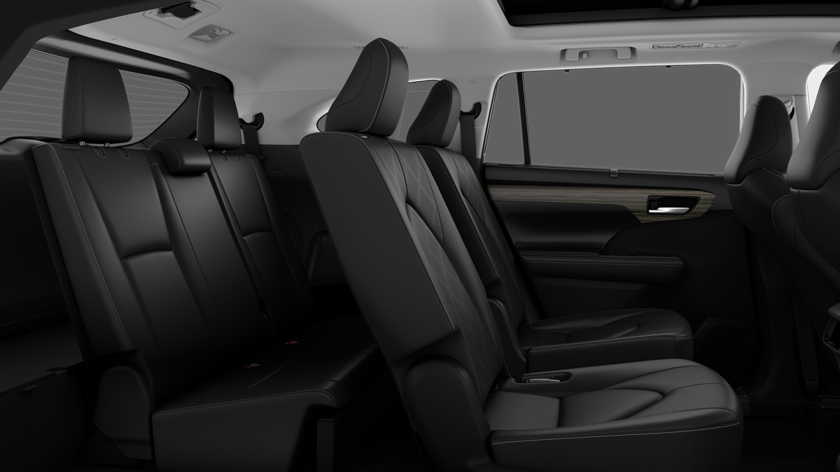 - 7-passenger seating with second-row fold-down captain's chairs and fold-down inboard armrests, adjustable headrests and two cup holders mounted on the floor; and 60/40 split, fold-flat third-row seats with sliding headrests and recline function
