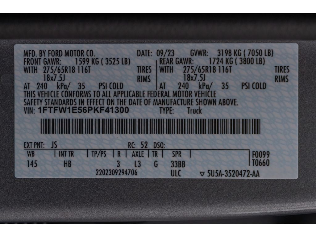 - Front Tire Size: P275/65SR18